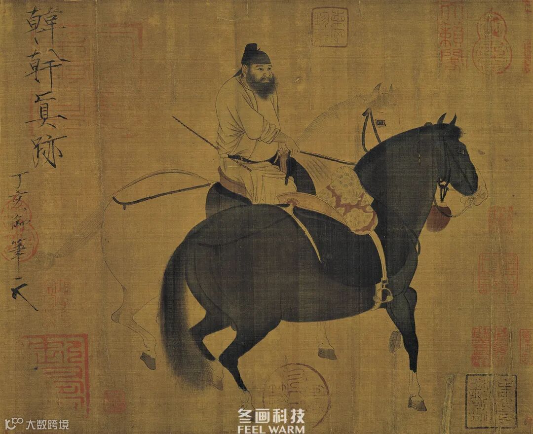 宋代董迫在《广川画跋》中记载道:“世传韩幹,凡作马,必考时日,面方位,然后定形骨毛色。”又《皱水轩词筌》载:“稗史称韩幹画马,人人其斋,见幹作马形,凝思之极。”可见韩幹画马时创作态度是十分严谨的。画马前,他对不同时间处在不同光线、角度、位置下的马的形体结构和颜色,深入地进行观察,反复地加以推敲,然后才动笔,所以他画的马,能得“骨肉停匀法,……至于傅染,色入缣素。”(《画鉴》)。