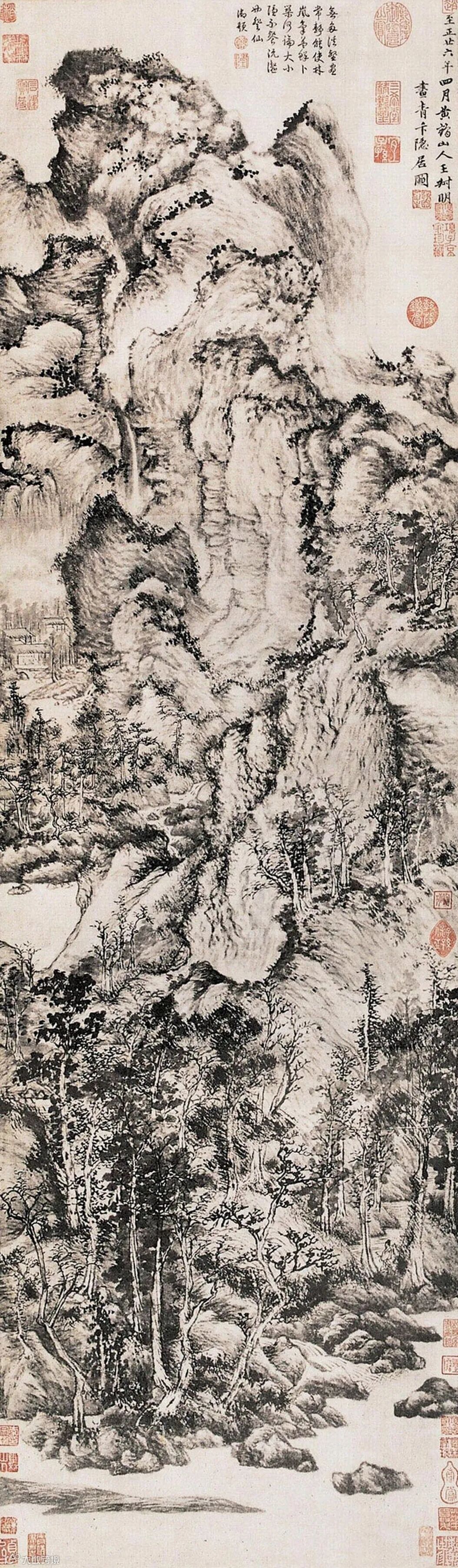 王蒙创造春山读书图的"水晕墨章",丰富了民族绘画的表现技法。