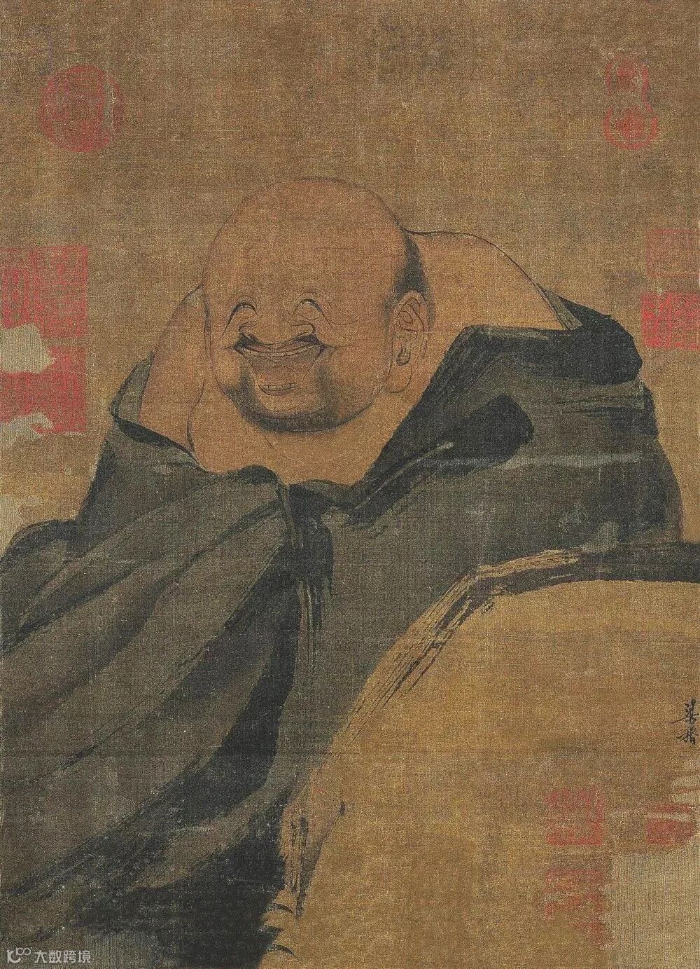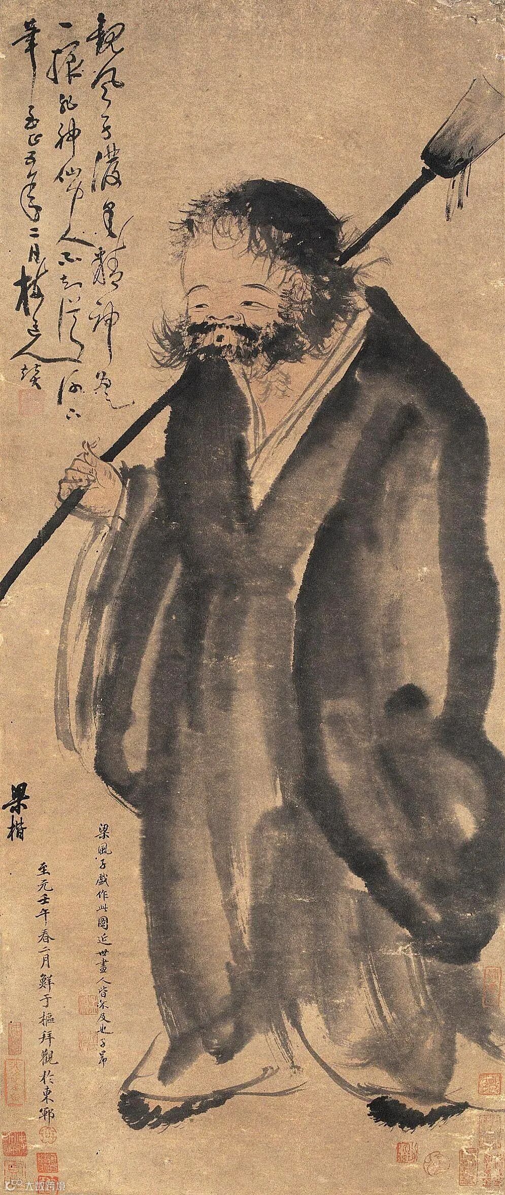 梁楷是个参禅的画家,作品粗行一派。不拘法度,放浪形骸,与妙峰、智愚和尚交往甚密,虽非僧,却擅禅画。
