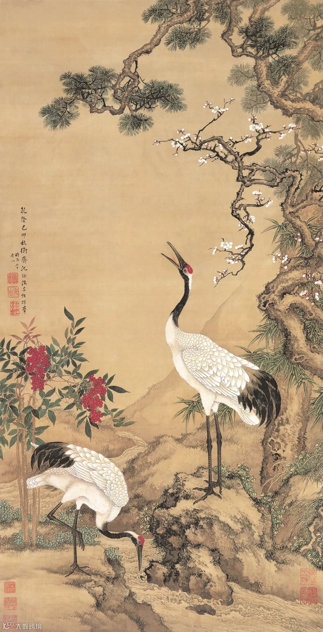 清 沈铨《松梅双鹤图》