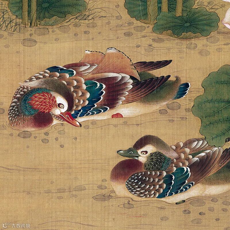 清 沈铨《荷塘鸳鸯图》细节展示