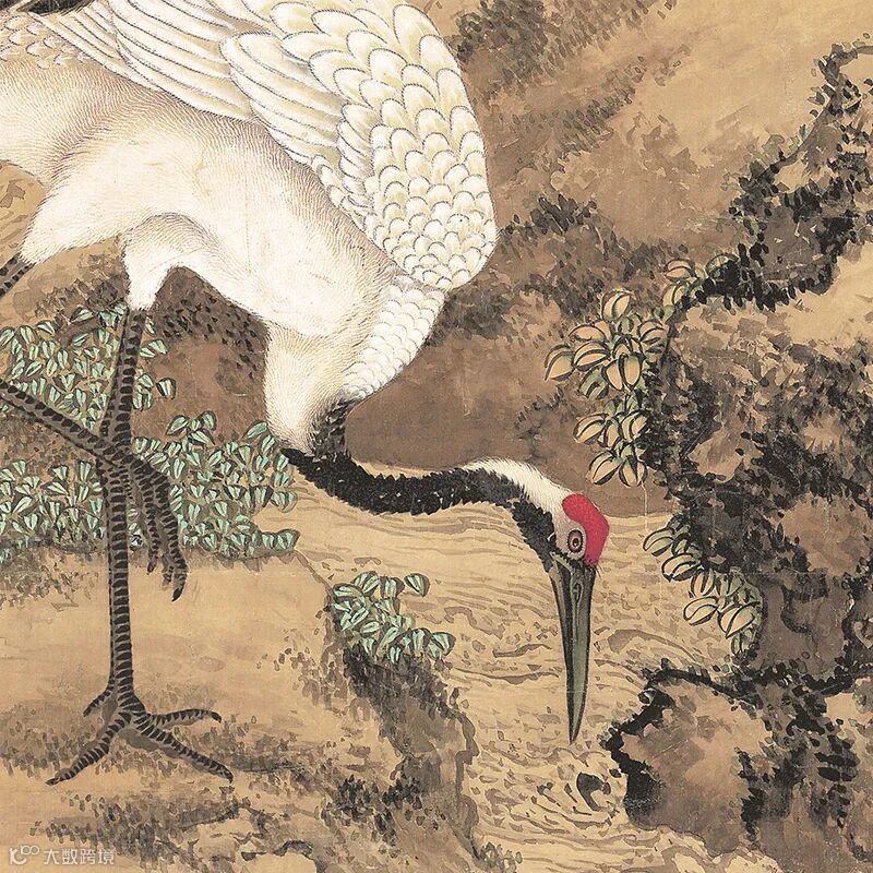 清 沈铨《松梅双鹤图》细节展示