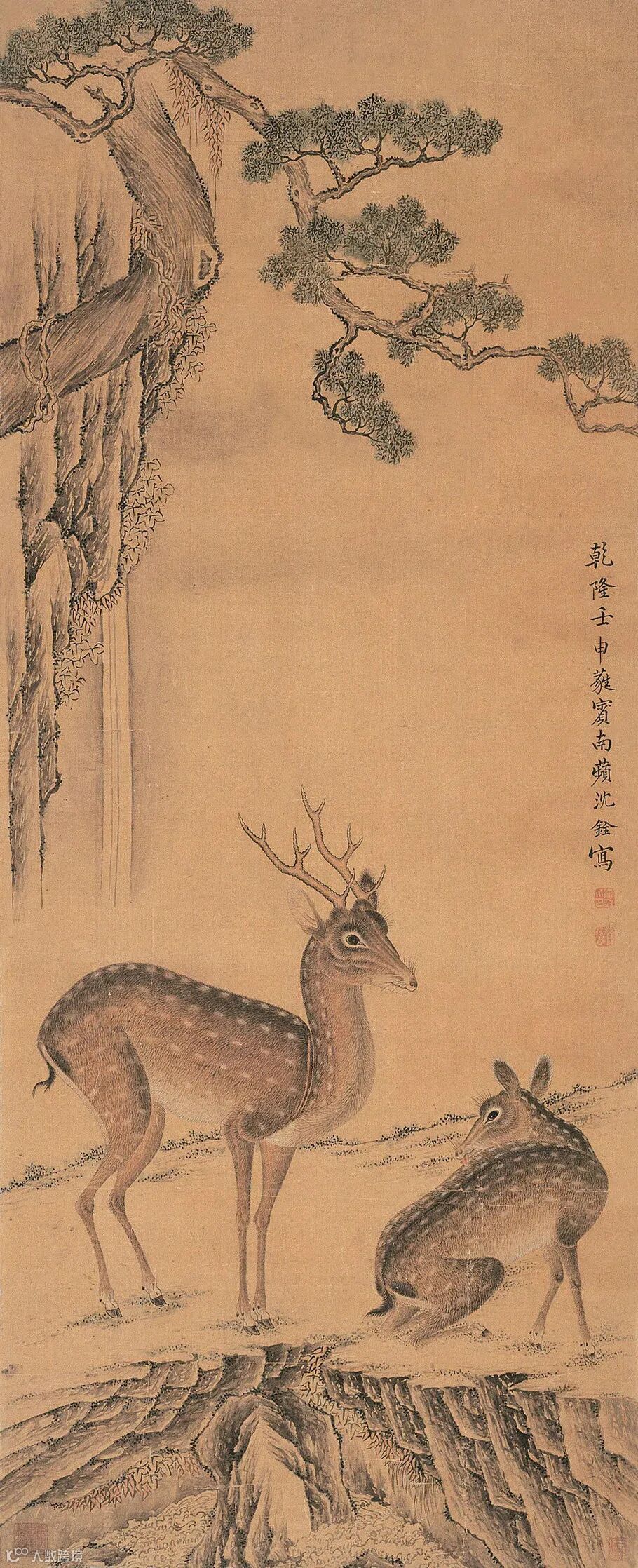 清 沈铨《双鹿图》