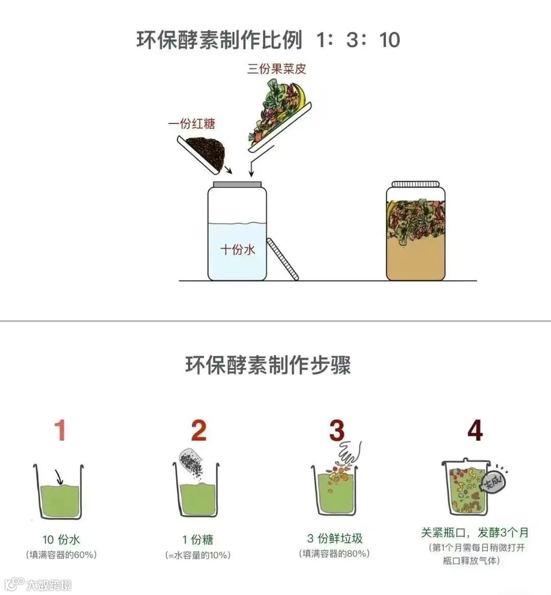 💐举例:100斤的塑料桶,就加入60斤水,6斤红糖,18斤生鲜瓜果皮、蔬菜渣、等等植物的根茎叶。