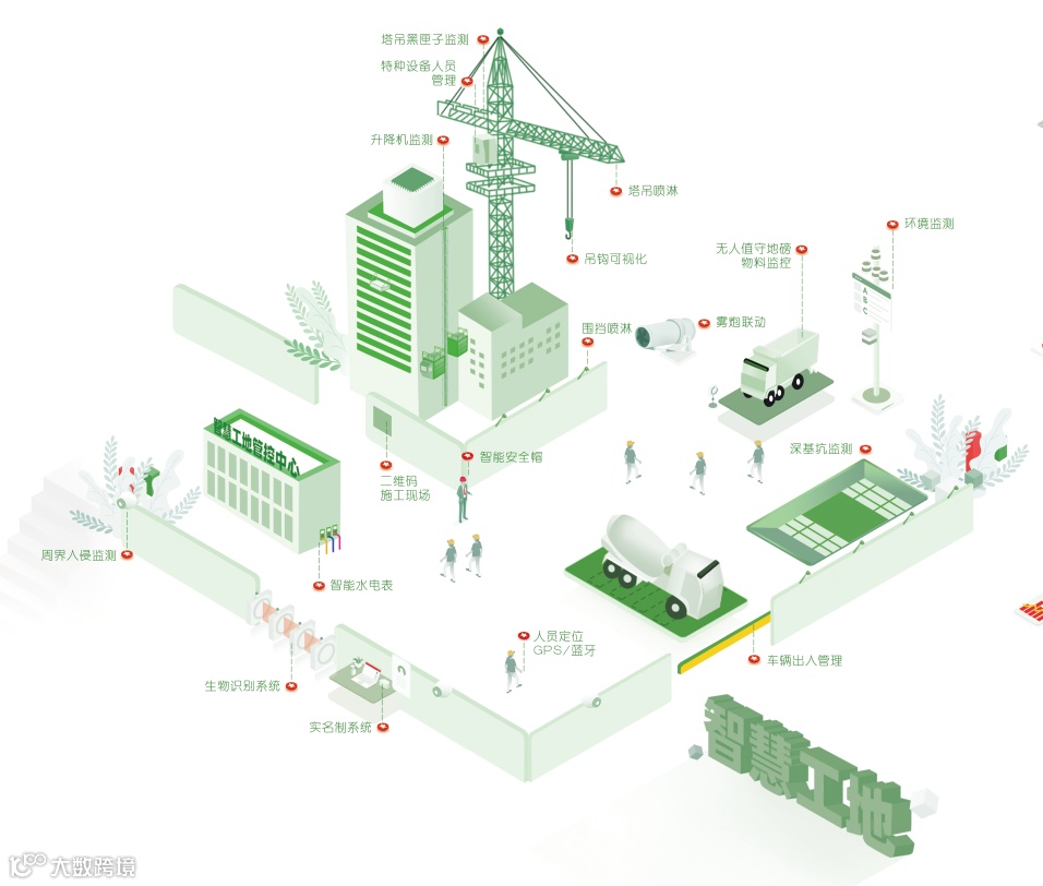 通过扬尘噪音检测系统实时监测周边环境质量,自动触发解决机制;安装智能节水节电设备,优化施工成本。