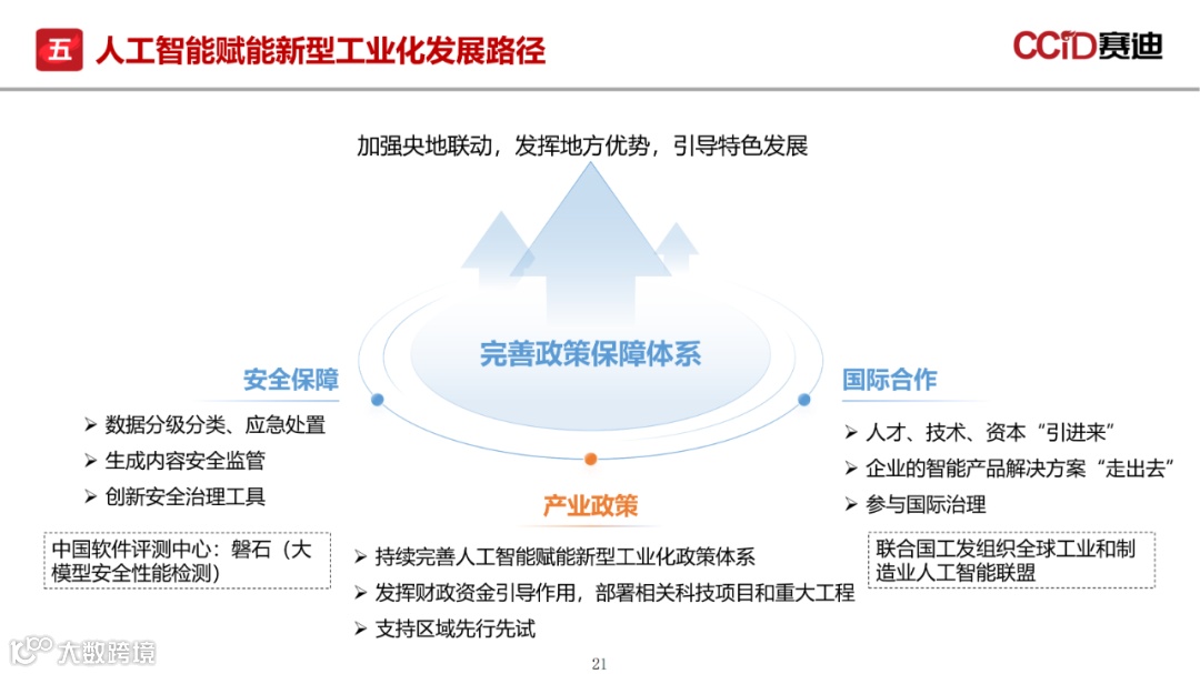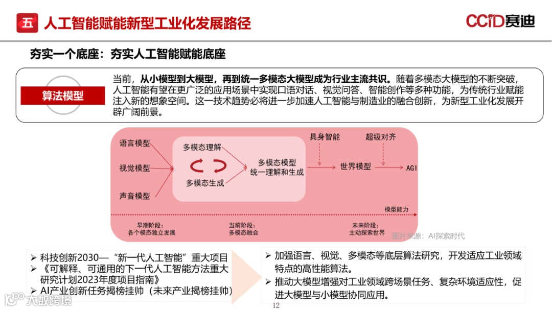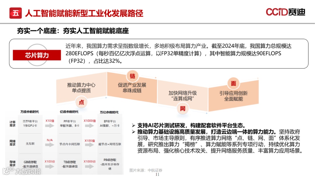具体措施:支持AI芯片研发、推动算力网络发展、加强多模态大模型研究、建立工业数据共享开放标准等。