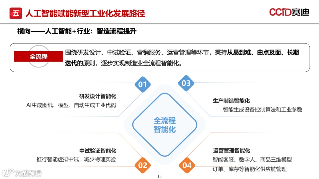 全链条智能化驱动制造业升级:AI技术贯穿研发设计、中试验证、生产制造、营销服务等环节,催生新模式。