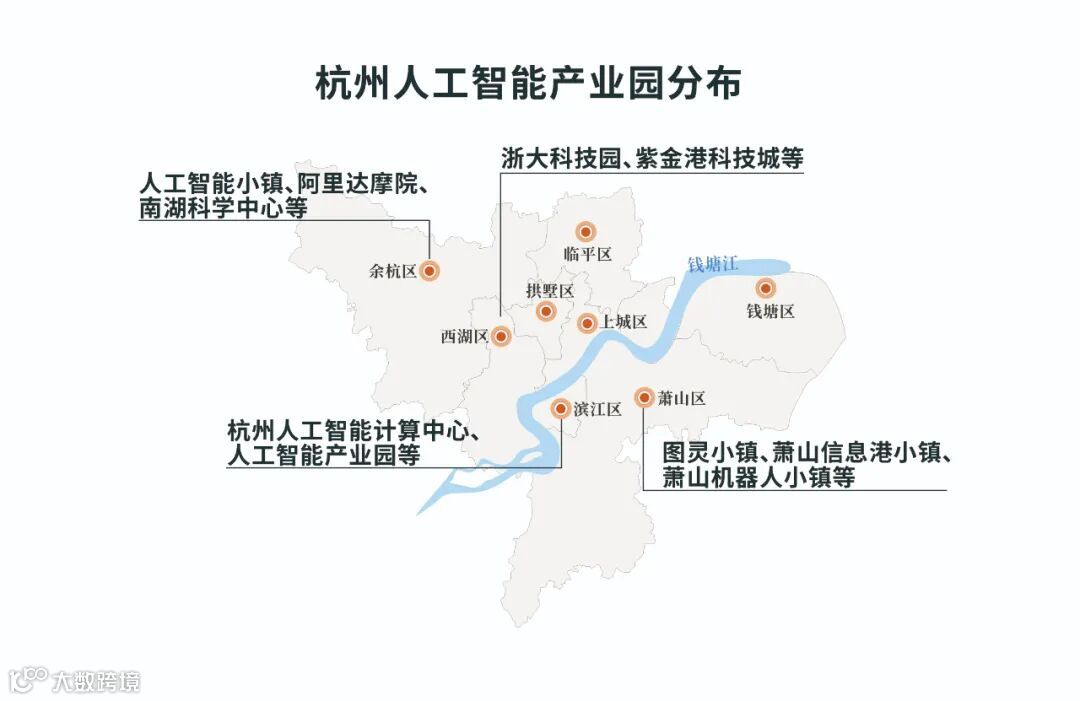 目前,杭州的人工智能产业已经初步形成了城西科创大走廊、萧山及滨江区双核集聚,余杭区、西湖区、钱塘区、临安区、上城区、拱墅区、富阳区等多点布局的态势。从主要发展平台的分布来看,滨江区作为杭州高新区,聚集了杭州人工智能计算中心、人工智能产业园;萧山区拥有以人工智能为主导的图灵小镇、萧山信息港小镇、萧山机器人小镇等聚集区;西湖区的人工智能发展平台主要是浙大科技园、紫金港科技城等;人工智能小镇、阿里达摩院、南湖科学中心等平台则坐落在余杭区。