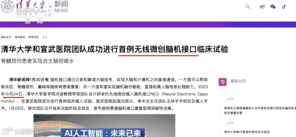 清华大学官网1月30日发布消息,该校医学院脑机接口研究团队与首都医科大学宣武医院联合,于2023年10月成功进行全球首例无线微创脑机接口临床试验。