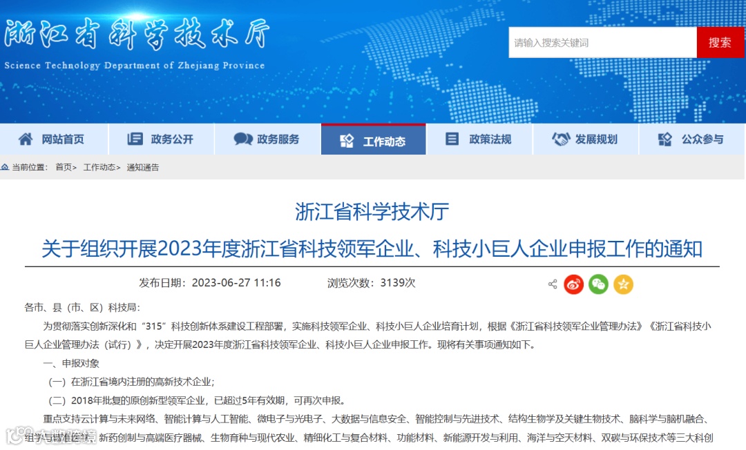 (一)企业对照科技领军企业或科技小巨人企业申报条件进行自我评估,符合条件的,登入“浙江政务服务网-科技企业成长在线”(https://qyyffw.kjt.zj.gov.cn/fwzxpc/),通过“企业培育”场景进入科技领军企业或科技小巨人企业申报界面,按照“申报指引”完成申报。