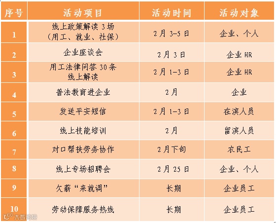 暖心关爱:走访企业送政策、送服务,并汇总企业各类留岗政策和暖心举措进行发布,营造关心关爱省外员工的良好氛围;节前开展线上政策解读会3场,涵盖春节期间劳动用工、就创政策申报、社保医保解读等内容,鼓励企业以岗留工、以薪留工,稳定就业岗位。