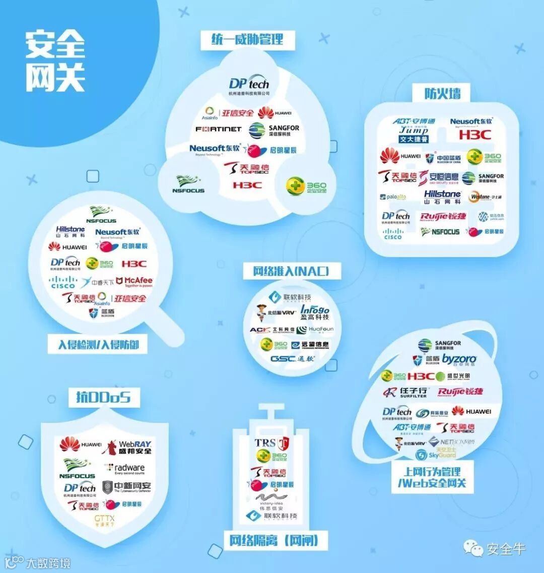据了解,本次发布的全景图是“安全牛”基于长期与安全厂商、安全行业资深顾问专家的交流、调研而分析出具的。