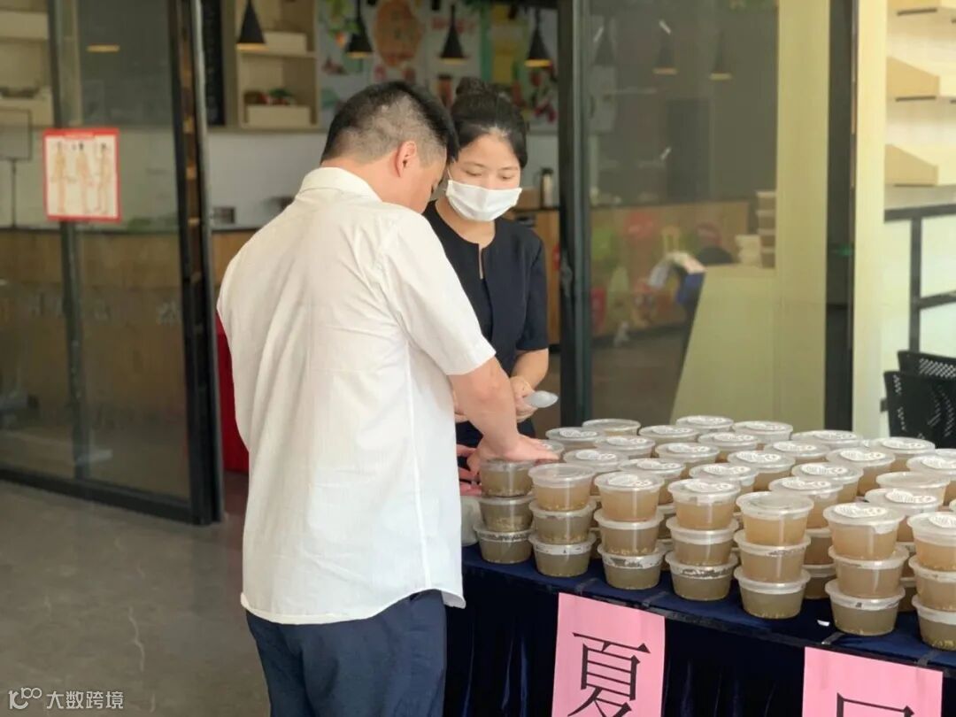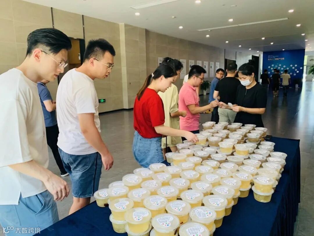 2020年8月14日中午,智新泽地·杭州人工智能产业园开展了“送清凉”活动,园区精心准备了绿豆糖水、银耳汤等清凉饮品,为园区企业员工免费发放。