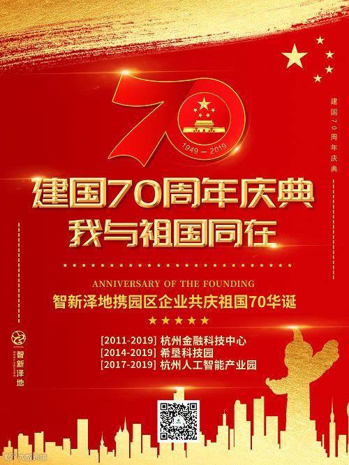 普天同庆,杭州人工智能产业园携园区企业共庆祖国70华诞!