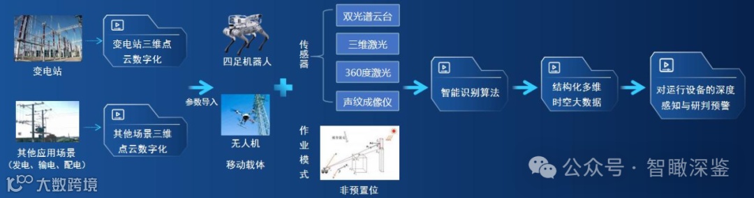 四足巡检机器人,搭载了高清可见光相机、红外热成像仪、局部放电传感器等设备,可实时获取巡检设备运行状态,并与控制中心进行实时数据交互,满足机房的智能化巡检和维护需求。可完成日常巡检、故障诊断、预警报警等多种任务。