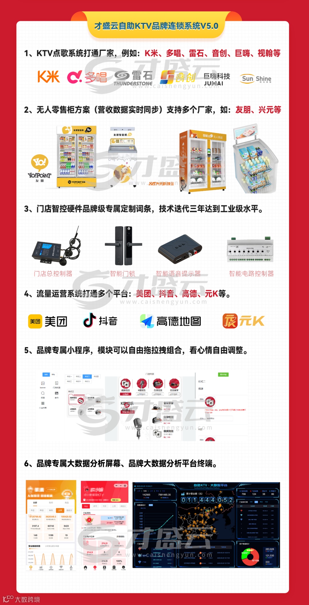 典型案例:帆麦、麦粒空间等品牌借助才盛云实现全国快速布局,单店投资仅需传统KTV的1/5 (约40万),投资回报周期缩短50%