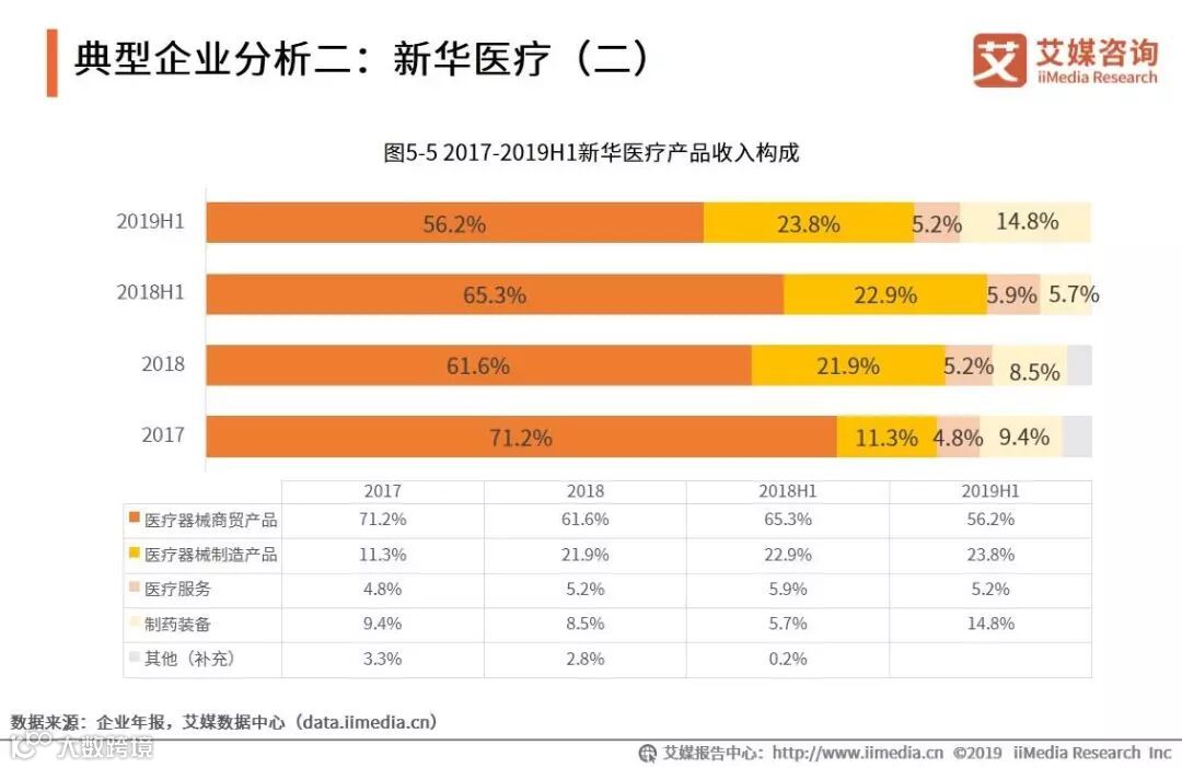 医疗商贸板块:新华医疗创新的商业模式,为新华医疗的主要营业收入板块,2017-2019年上半年基本保持50%以上的收入来自该板块。