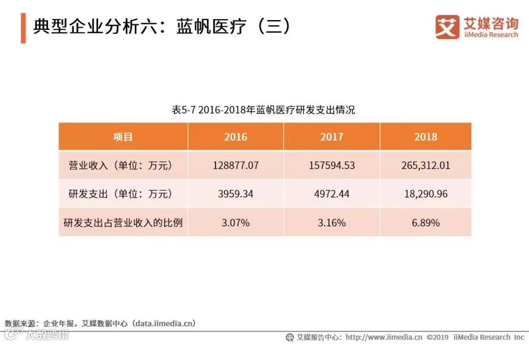 蓝帆医疗目前拥有研发技术人员总共465人,占企业总人数的10.41%。公司十分重视自主研发,2018年研发投入18,290.96万元,比上年同期的4972.44万元增长了267.85%。同年,蓝帆医疗新增专利技术37项,累计已申请的专利达221项。艾媒咨询分析师认为,自主研发技术将进一步巩固蓝帆医疗的行业地位,并推动企业继续发展。