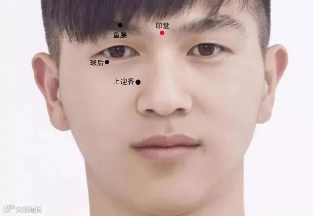 印堂穴位于脸部正面,左右眉间正中央;灸透印堂穴可以醒脑通窍、明目利肝。