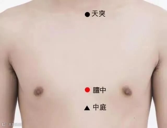 膻中穴在两乳头连线的中点,有温散寒邪、温通经络、活血逐痹、回阳固脱的作用。女性经常艾灸膻中穴可以保护乳房,减少乳腺疾病的发生。