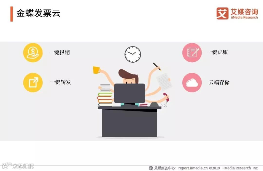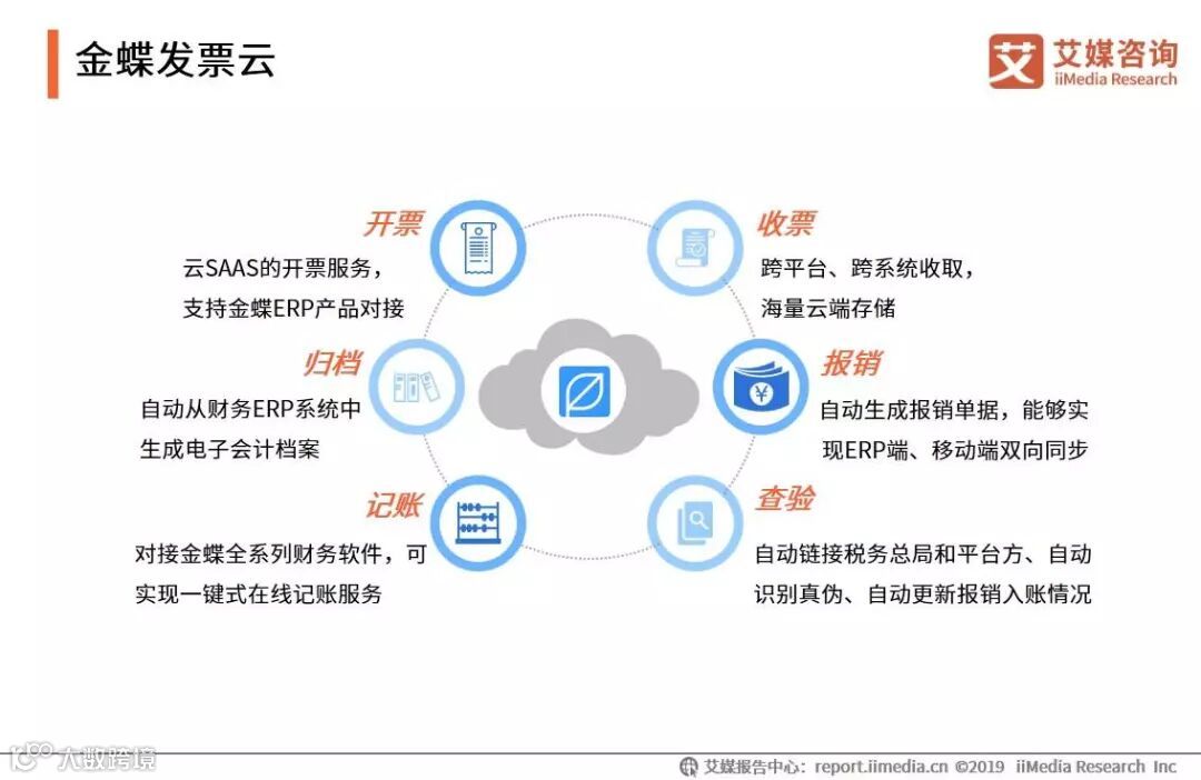 金蝶发票云的核心功能包括一键报销、一键记账、一键转发、云端存储。艾媒咨询分析师认为,金蝶集团在财税软件应用方面有较深的积淀,知名度较高且产品渗透率广,更易实现产品和服务的延伸。金蝶发票云的优势在于其能与金蝶其他系列产品发挥较大的协同作用。未来能否及时了解市场变化,满足客户个性化需求是其保持竞争优势的关键所在。