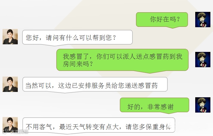 从客户关注酒店公众号后,酒店智能客服将长期陪伴客人左右不离不弃,让客人随时随地联系到客服第一时间解决烦恼,增加对酒店的信任,让客人有宾至如归的感觉。