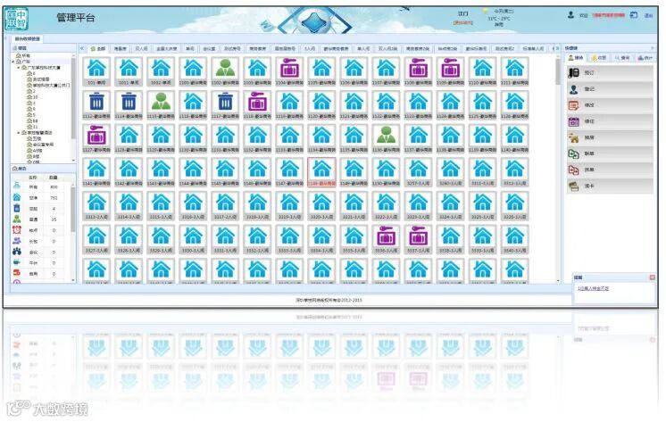 态和整体经营情况,同时还可以进行对酒店员工的管理, 并对员工的权限功能进行划分。