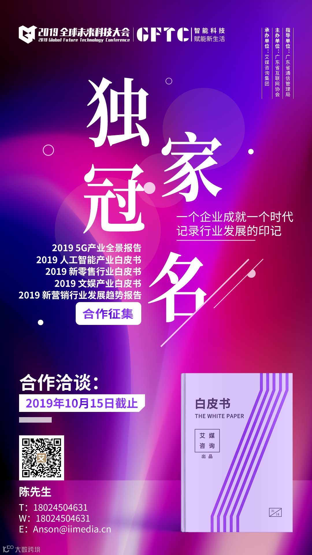 聚焦行业新发展、探讨新经济行业新趋势。由广东省通信管理局指导,广东省互联网协会主办、艾媒咨询承办的“2019全球未来科技大会”将于10月31日在广州盛大举行。