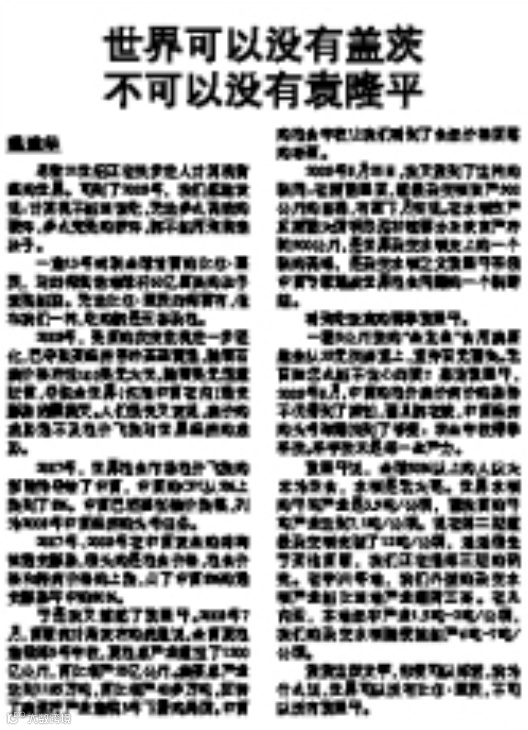 中国青年报《世界可以没有盖茨,不可以没有袁隆平》(2008年8月29日)