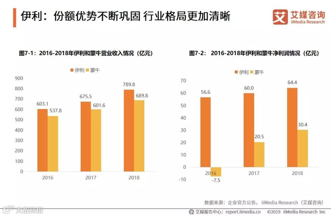 根据最新发布数据,伊利公司2018年营业收入接近800亿,与最大对手蒙牛的差距从30亿到80亿扩大到了100亿。