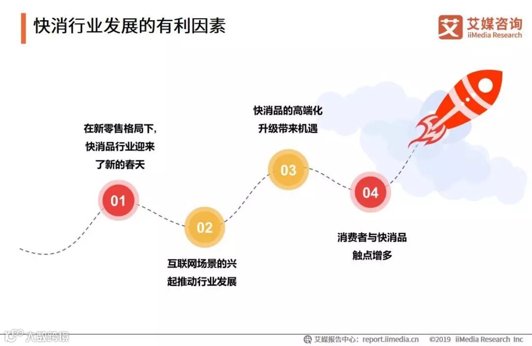 艾媒咨询分析师认为,随着居民消费水平的提高,中国消费者对高端快消品购买意愿的增加,未来中国快消品行业规模将继续稳步上升。2018年快消品消费在中国居民消费的比重约为34.6%,是居民消费金额中占比最大的项目,快消品在居民消费中具有重要地位。2018年中国社会消费品零售销售额达到38.1万亿元,快消品销售额增长率达到5.2%,其中个人护理品类增长速度最快,达到10.3%。