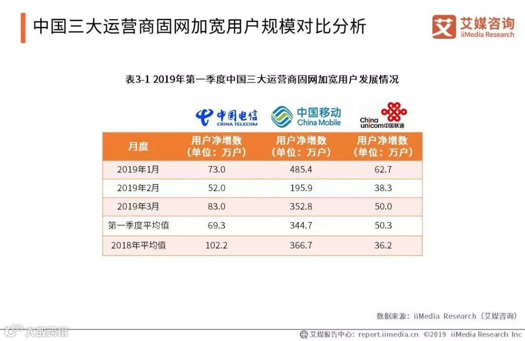 中国三大运营商固网加宽用户规模对比分析