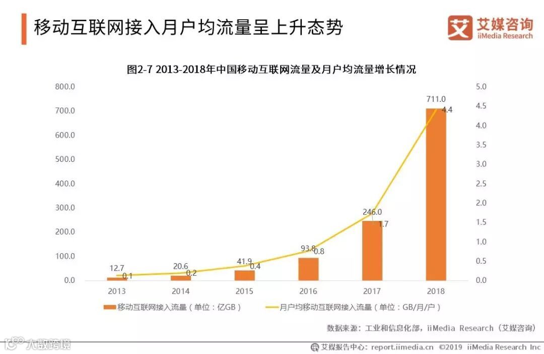 2018年,各种线上线下服务加快融合,移动互联网业务创新拓展,带动移动支付、移动出行、移动视频直播、餐饮外卖等应用加快普及,刺激移动互联网接入流量消费保持高速增长。