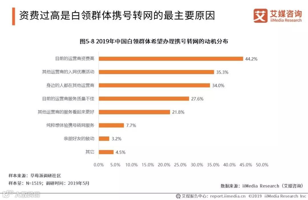 资费过高是白领群体携号转网的最主要原因
