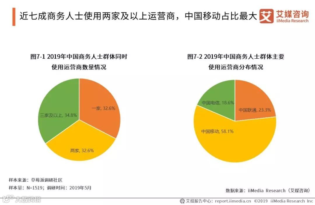 近七成商务人士使用两家及以上运营商,中国移动占比最大
