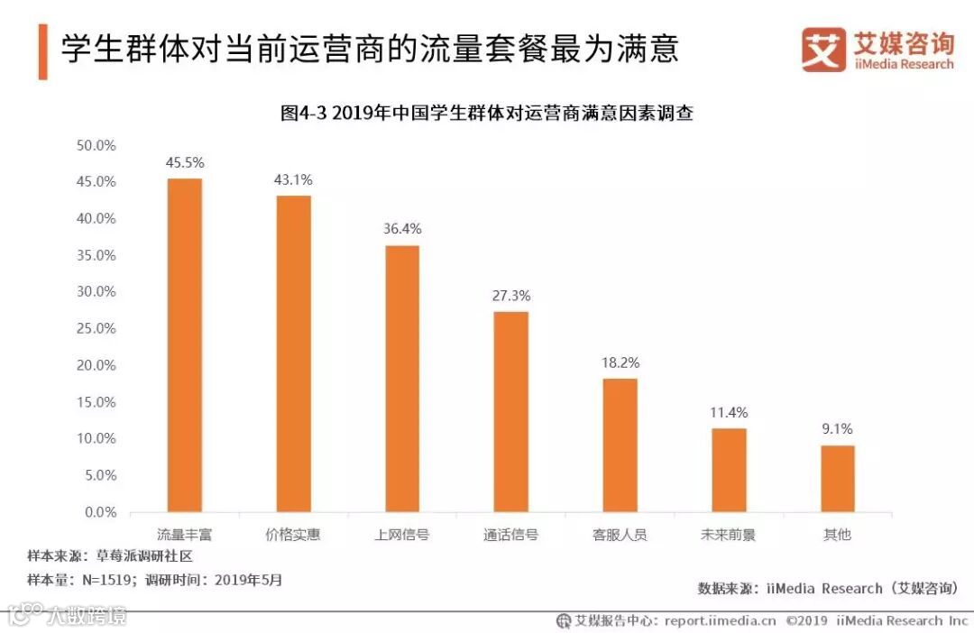 学生群体对当前运营商的流量套餐最为满意