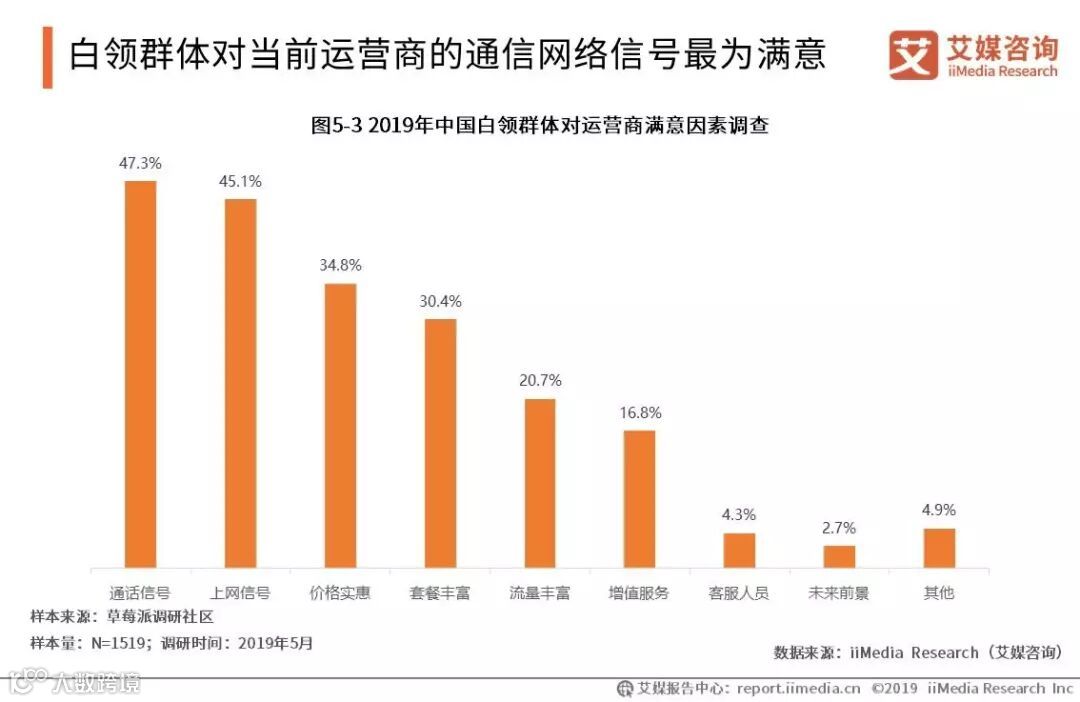 白领群体对当前运营商的通信网络信号最为满意