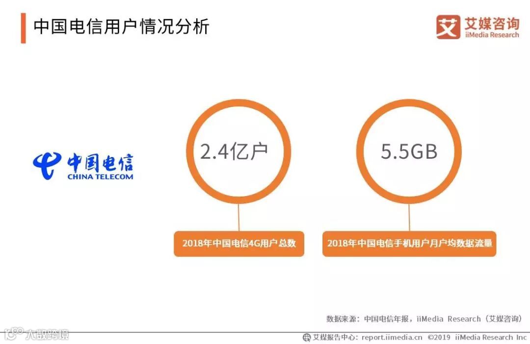 2018年中国电信用户数达到3.0亿户,净增5304万户,创公司历史新高,净增市场份额达到44.0%,总体市场份额提升至19.6%。其中,4G用户达到2.4亿户,净增6039万户,保持历史高位,渗透率达到80%。手机上网总流量增长近3倍,4G用户月均上网流量DOU达到5.5G。