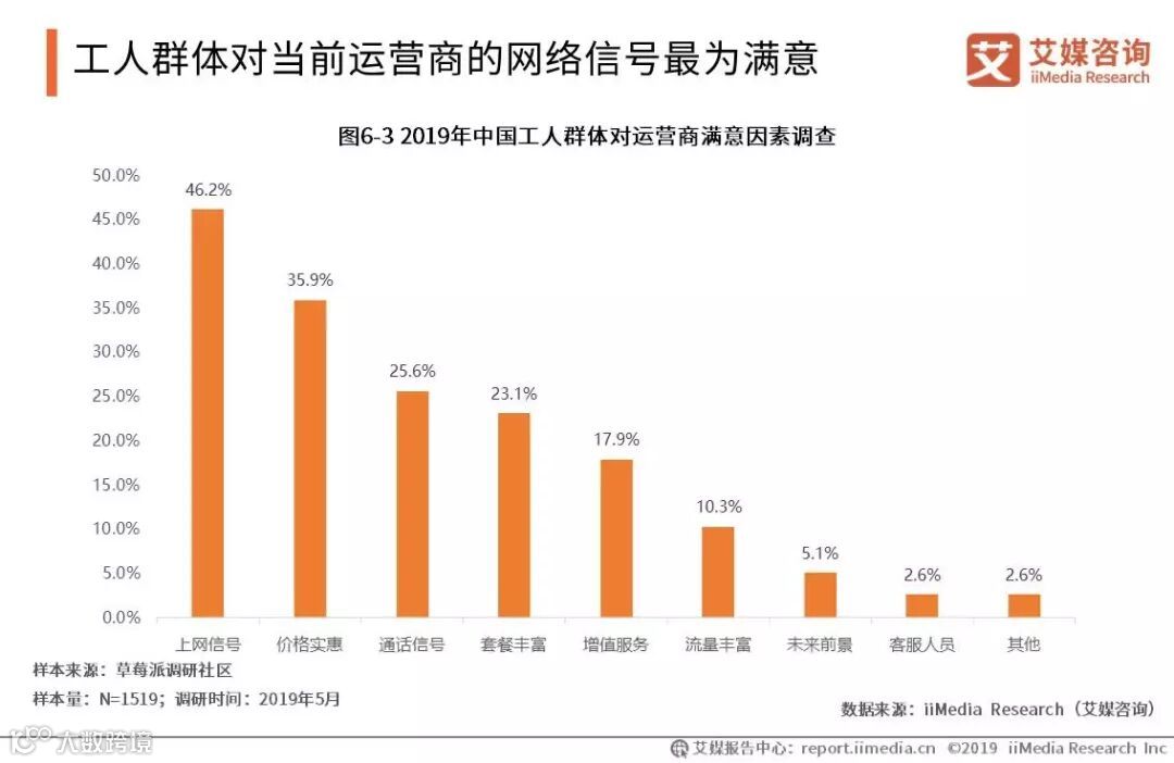 工人群体对当前运营商的网络信号最为满意