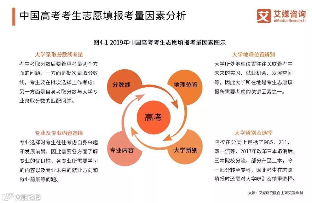 2019年新一轮中国高考改革全面铺开,现阶段考生不仅在大学录取分数线把控、大学地理位置、大学分类和专业学习内容上面临选择难题,随着本科录取批次合并、院校专业调整以及新职业的出现,高考志愿填报难度不断上升,因此考生在作出选择时,需要搜集更多相关信息,多向前辈、老师寻求意见,结合多种参考因素综合考虑。