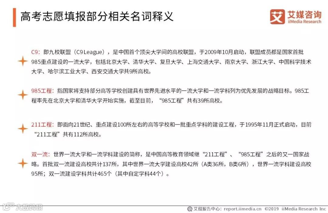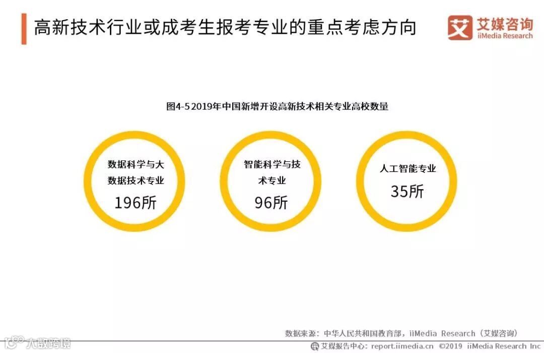 目前高考考生持续增加及高等院校数量相对较少的供需不平衡差异,催生了高考志愿报考行业衍生行业,特别是网络知识付费等产业的兴起令知识付费的观念被普遍接受令高考志愿填报付费行业开始兴起。 iiMedia Research(艾媒咨询)数据显示,2019年高考志愿填报付费市场规模预计将达到5.9亿元。