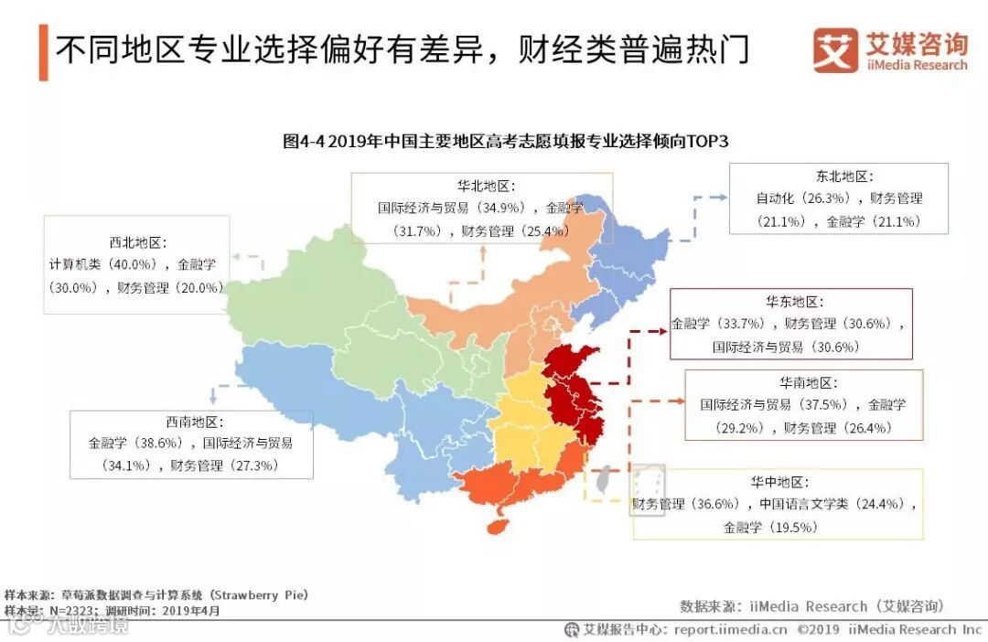 不同地区专业选择偏好有差异,财经类普遍热门