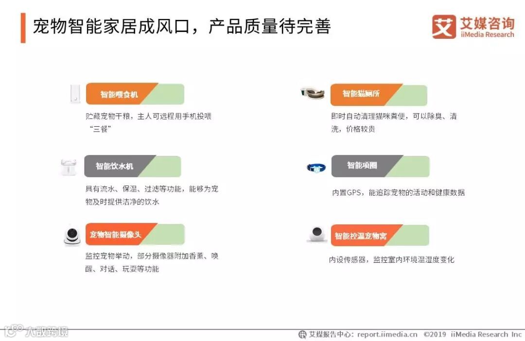 消费者对宠物家居用品的需求造就了智能家居行业新机遇。 “宠物智能家居” 的产品开始出现在各大电商上,涵盖了宠物“吃喝拉撒睡”的各个环节,省时省力。然而,目前部分智能家居产品质量面对质疑声。曾有一款智能猫窝产品因设计缺陷导致产品倒扣、闷死宠物,产品质量有待完善。