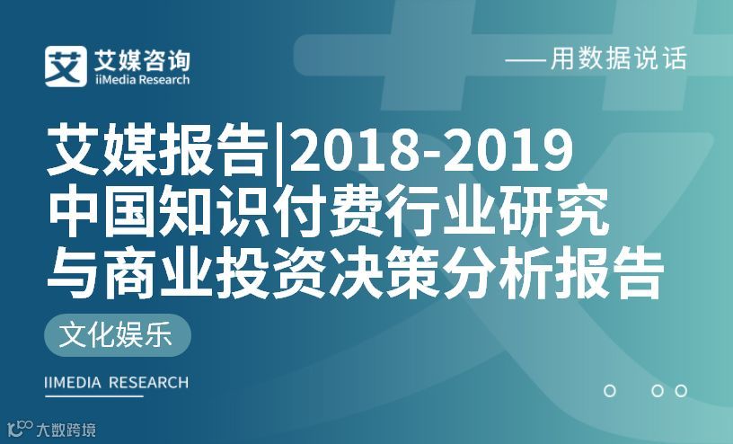 艾媒报告 |2018-2019中国知识付费行业研究与商业投资决策分析报告