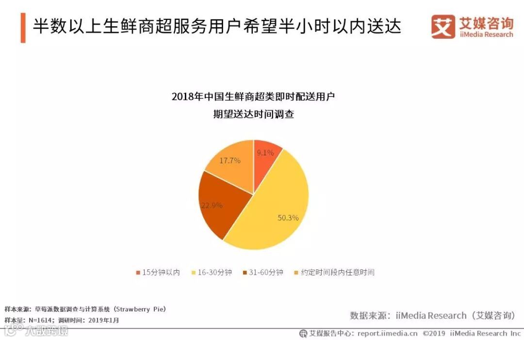 iiMedia Research(艾媒咨询)数据显示,有50.3%的受访用户表示希望在16-30分钟内送达,而22.9%的受访用户则表示希望31-60分钟送达。艾媒咨询分析师认为,时效性是即时配送最重要的特征,各大平台都在积极布局3公里30分钟生活圈。在保证方便快速的同时,也要提升配送时间的精准性。