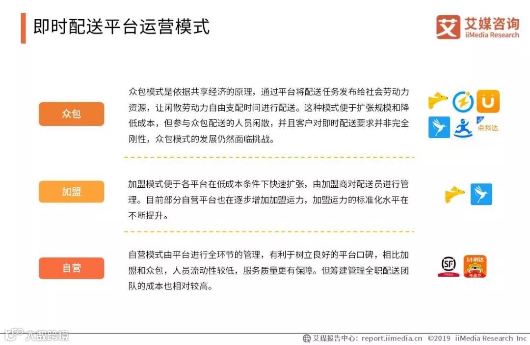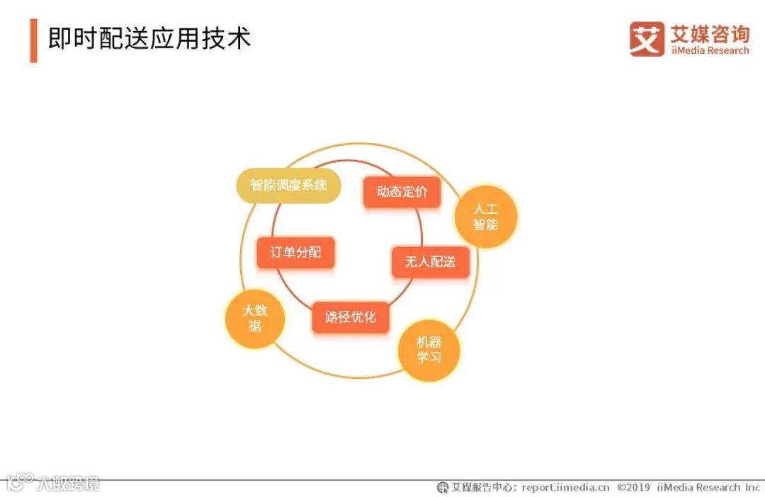 艾媒咨询分析师认为,即时配送离不开大数据、人工智能、运筹优化、移动互联网等的支撑,通过分析海量数据,预测运力需求并对配送过程进行优化,进行语音交互与实时监控,提高配送效率,降低配送成本。 即时物流容错率较低,在业务复杂度提升的同时也应提高分布式、可扩展等的能力。信息化与智能化则是即时配送亮眼的标签,美团ETA分析模型、饿了么方舟Ark智能调度系统、达达-京东到家的动态定价系统,都是即时配送业务持续发展的技术基础。
