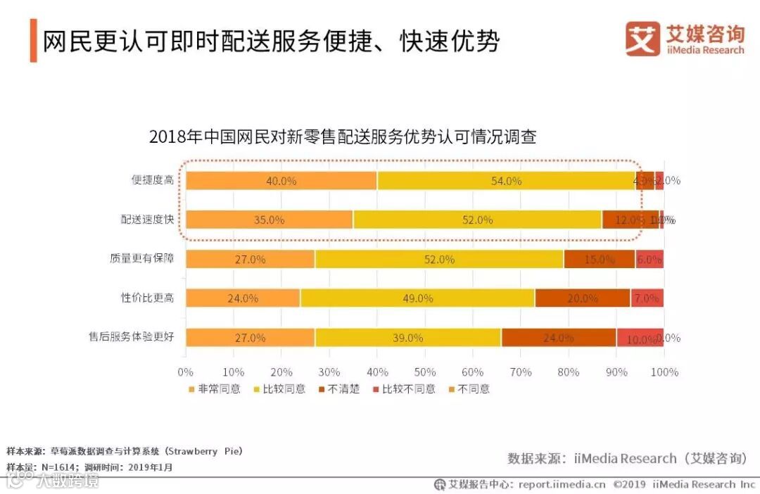 iiMedia Research(艾媒咨询)数据显示,大部分受访用户认可新零售配送服务的便利、快捷、以及质量,同时表示线下体验也非常有必要。艾媒咨询分析师认为,新零售发展迅猛,消费者对消费体验的提升有明显感受。