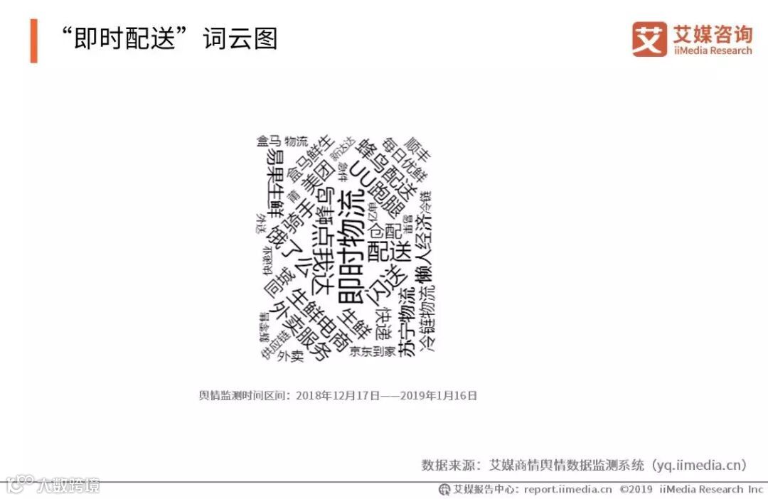 艾媒大数据舆情监测系统数据显示,系统监测期间“即时配送”词云分析涉及较多的词语包括“即时物流”“点我达”“蜂鸟”“闪送”“UU跑腿”等应用领域和企业,此外,“外卖服务”“生鲜电商”“冷链物流” 等领域也有较高讨论热度。艾媒咨询分析师认为,随着消费观念的转变和消费能力的提升,对时效性要求较高的生鲜等即时配送服务正在逐步成为生活常态。以方便快捷为目的的消费也在不断增加,“懒人经济”正在兴起。