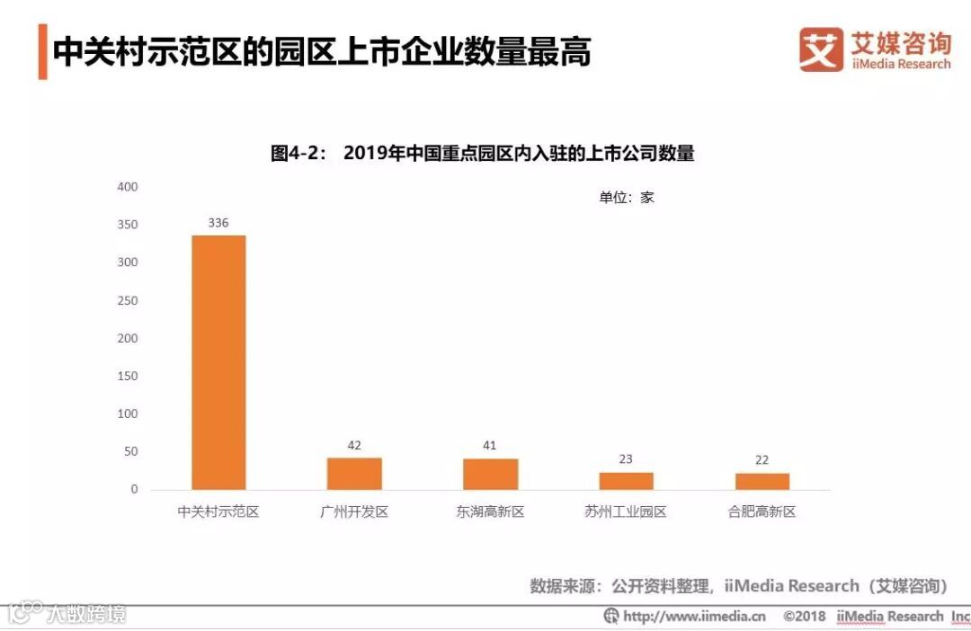 截至到2019年3月,在各大重点园区的上市公司数量比较中,中关村示范区园区内的上市公司数量遥遥领先,共达到336家,广州经济技术开发区和东湖高新区紧随其后。