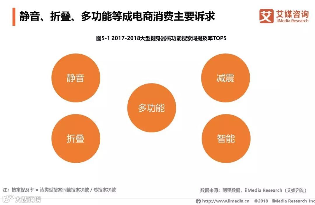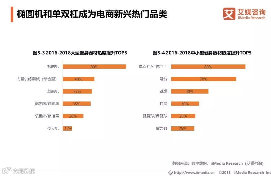 iiMedia Research(艾媒咨询)数据显示,2016-2018年健身器材用户选购偏好发生了变化。其中,椭圆机成为热度提升最快的大型健身器材,单双杠/引体向上成为中小型健身器材最受关注的品类。
